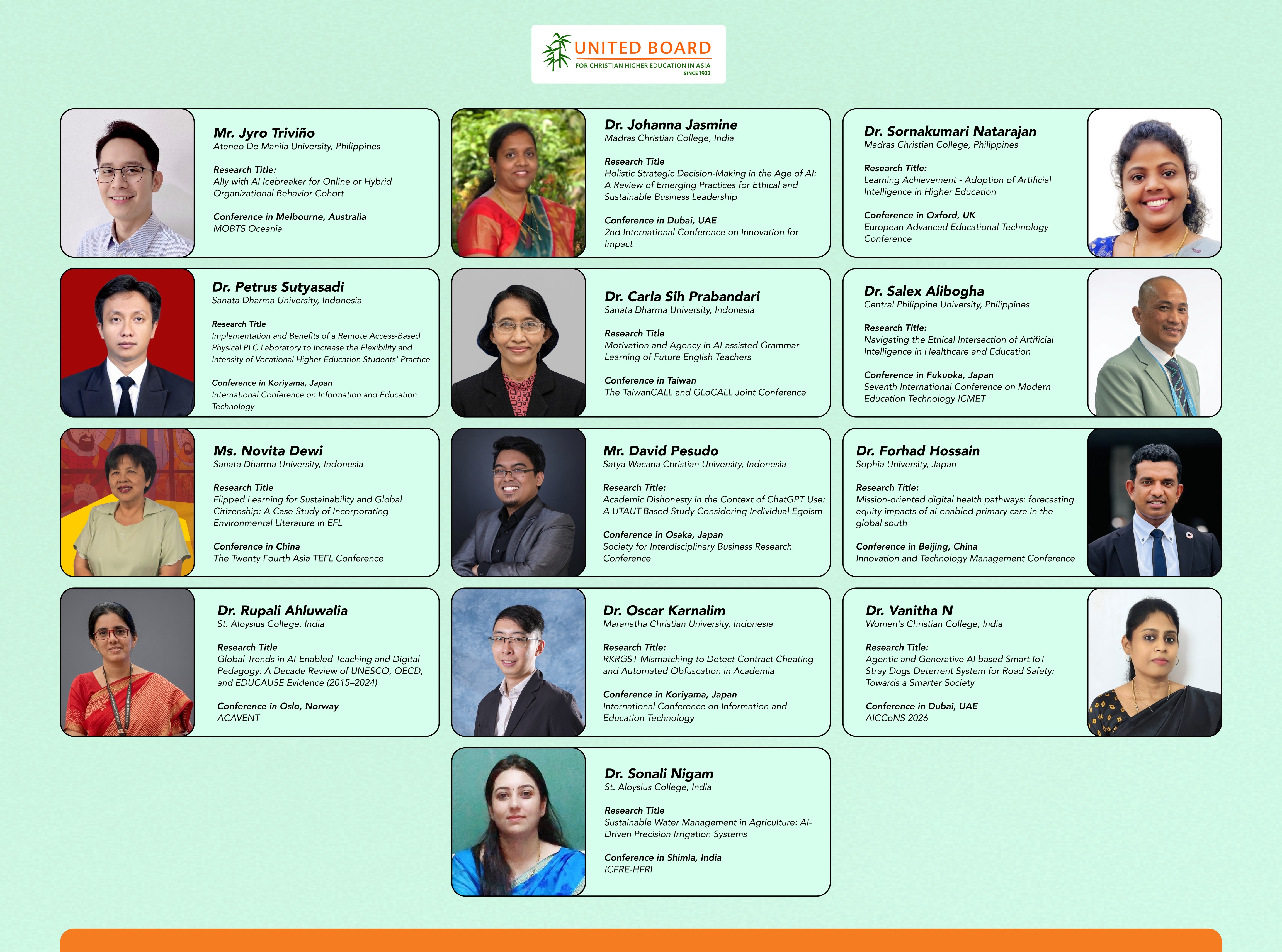 In an increasingly complex and rapidly evolving educational landscape, participation in international academic forums plays a critical role in ensuring that higher education institutions in Asia remain responsive, forward-looking, and globally connected. Through this grant, the United Board seeks to empower faculty members not only as researchers, but also as change agents who can lead digital transformation efforts within their institutions.